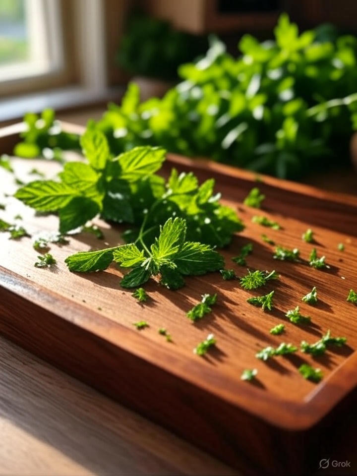 ۱. انتخاب مواد اولیه: سبزیجات تازه از مزارع ارگانیک برداشت میشوند. مثلاً جعفری باید در اوج تازگی (صبح زود) چیده شود.